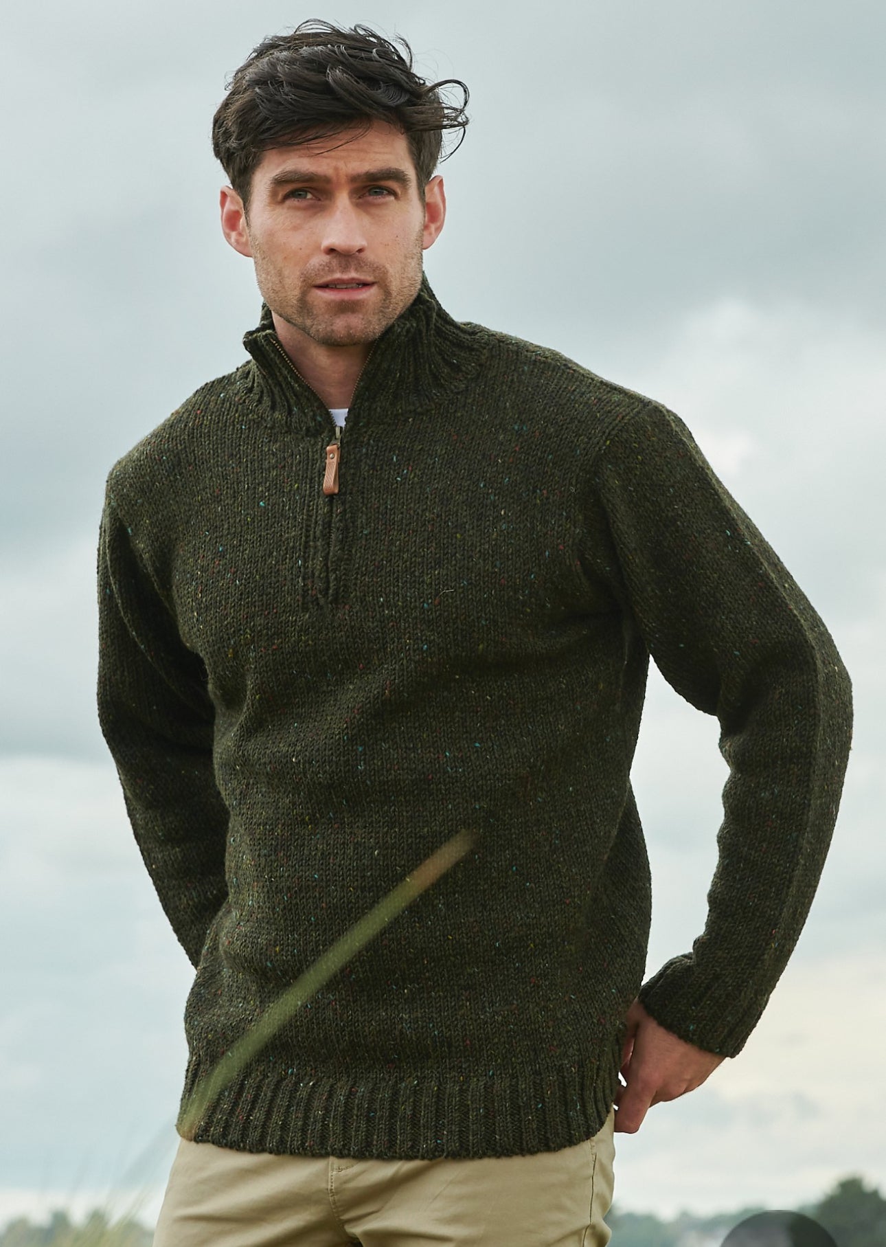 The yarn used is spun in the famous Donegal Yarns Spinning mill in Kilcarra, County Donegal, Ireland. This Irish man’s sweater comes to you knit in 100 % Donegal wool from our own spinning mill on the North West Coast. The wool has fleck throughout which gives it it’s very own special character. This mans 100% Irish wool jumper has a half zip neckline which can be worn open or closed for extra warmth.
