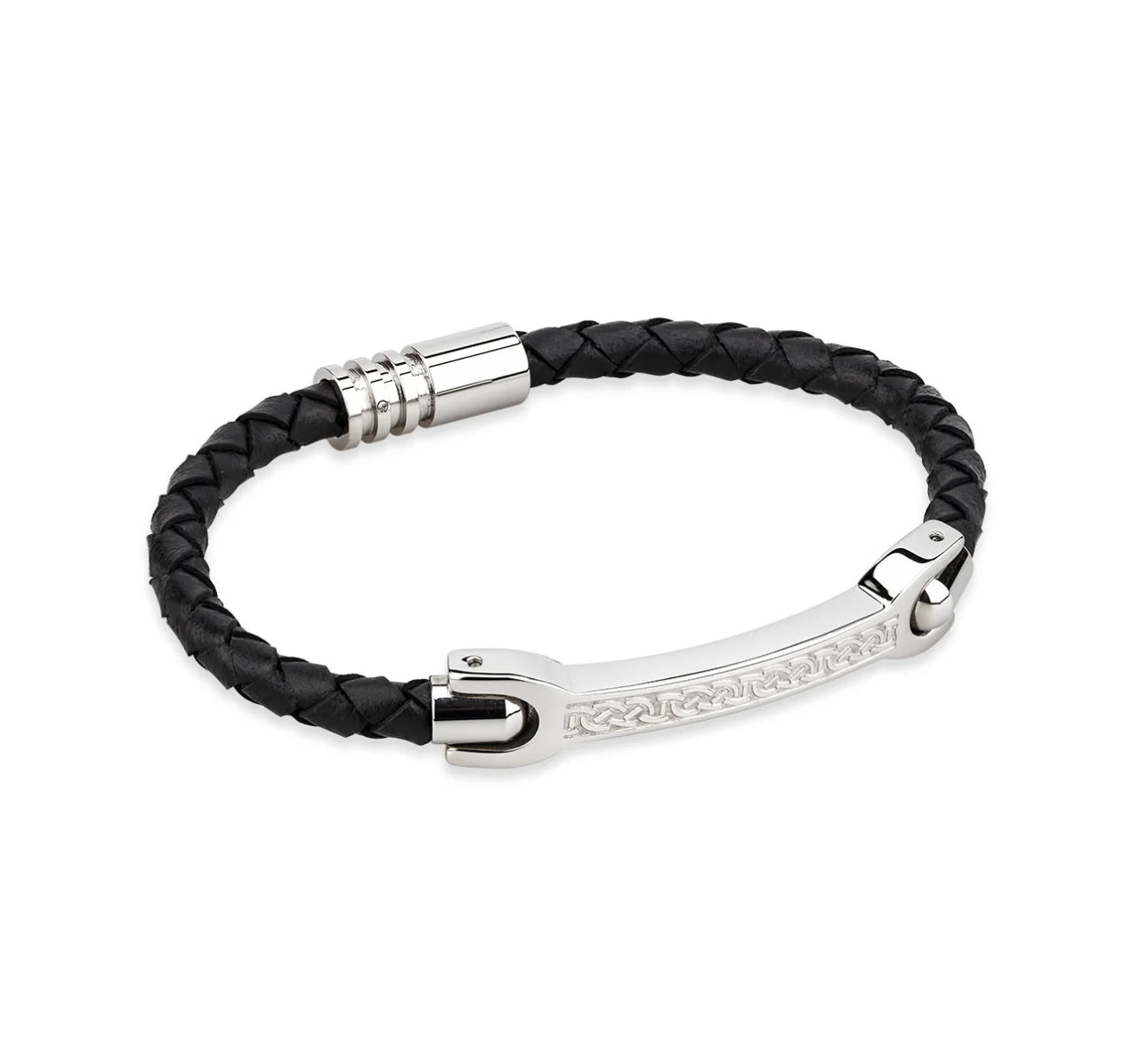 This unique piece for men features a steel plate, with a black leather bracelet engraved with Celtic knot-work on the front. There is a magnetic clasp allowing for easy putting on and taking off. A timeless piece that would make an excellent gift.