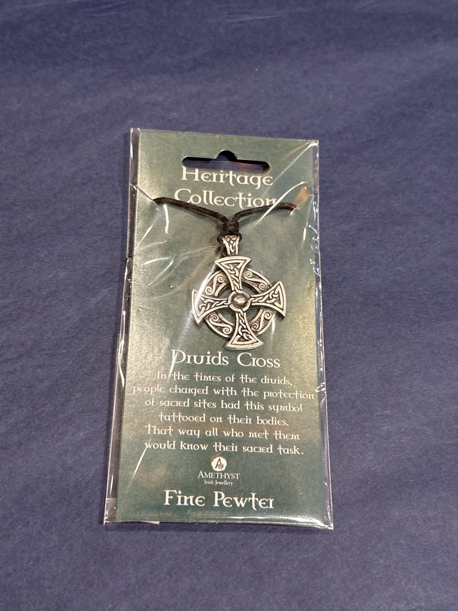 Pewter Druids Cross Necklace on Leather Cord