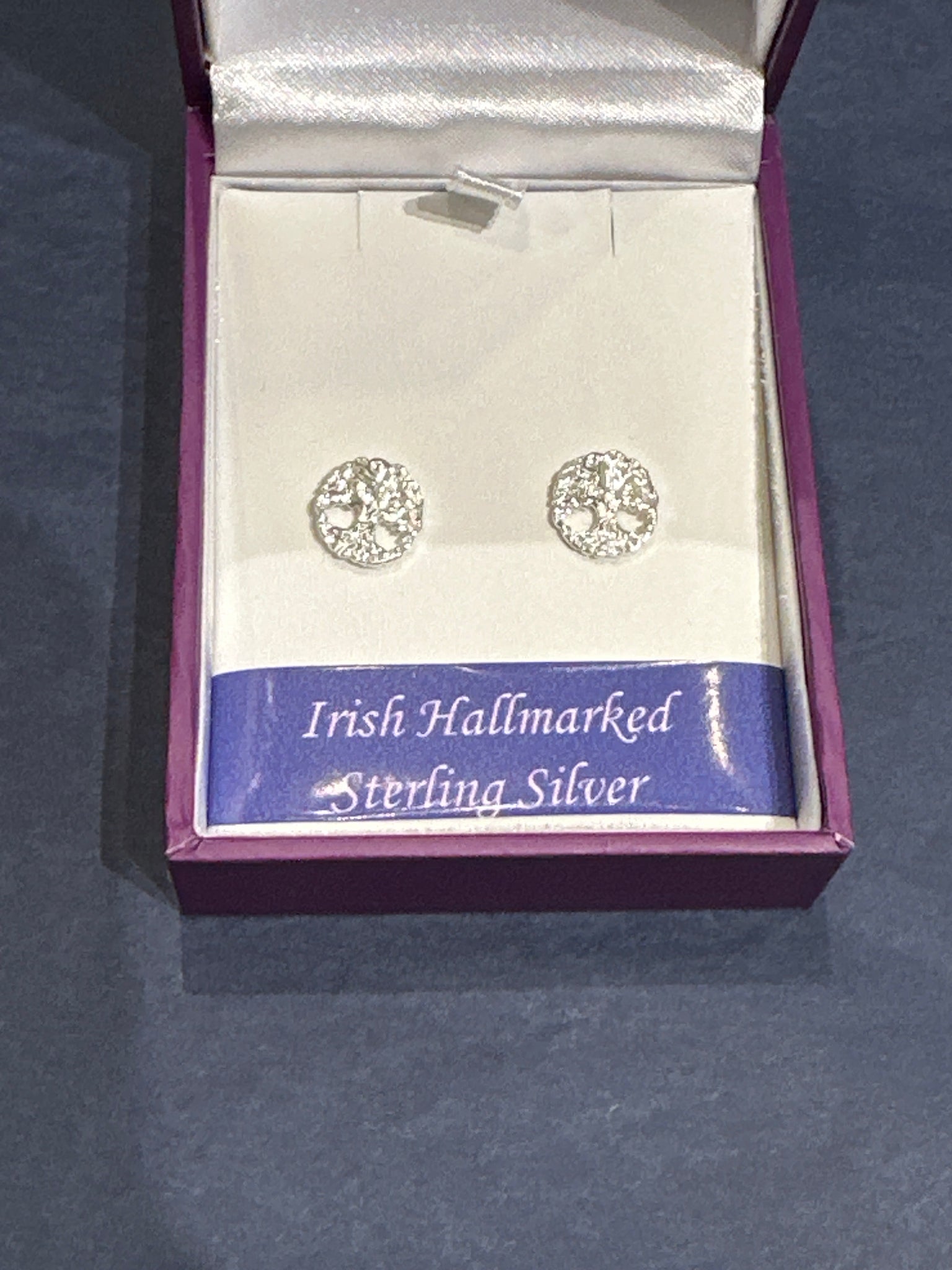 Celtic Tree of Life stud earring in sterling silver. Legend: The Tree of Life symbol can be found in many cultures including that of the Ancient Celts (Druids.) The Celtic Tree of Life depicts the forces of nature which converge together to create harmony, unity and balance of the universe. Celts believed the Trees of Life or Crann Bethadh to be the symbol of 'Creator' which provided food, warmth and shelter. Celtic people attribute qualities such as wisdom, strength, longevity, prosperity, abundance, and protection to the Tree of Life, the design of which has roots and branches that are interwoven to form an endless knot, representing eternity and the timelessness of nature.