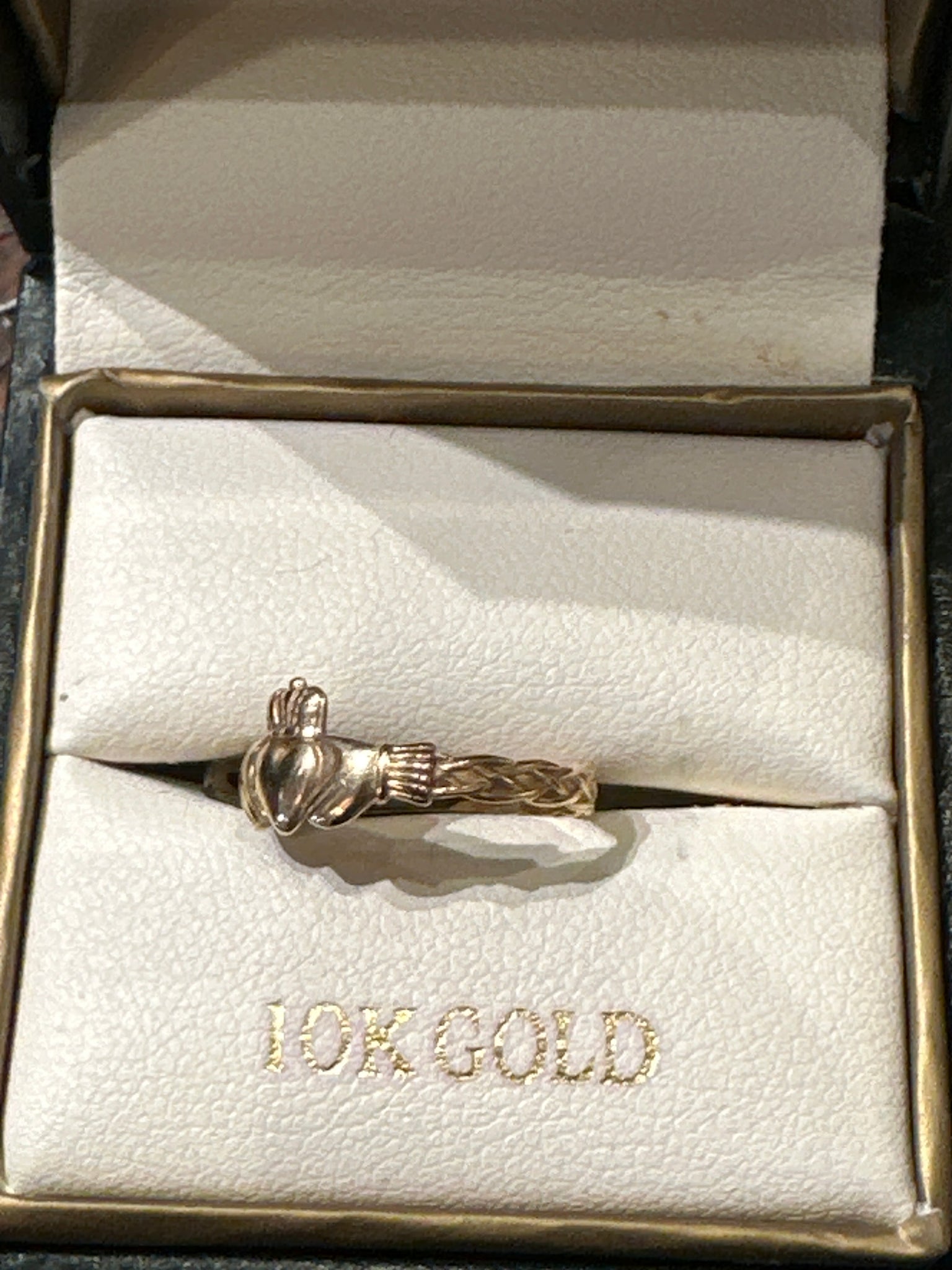 Tiny Claddagh Ring 10k Gold with Braided Back